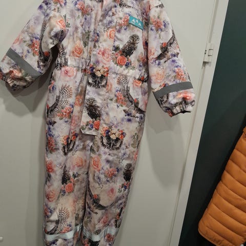 Ticket Outdoor toppahaalari / talvihaalari, koko 98. Violetti väri. Yleisilmeeltään siisti, ei reikiä, mutta pehmentymää löytyy takapuolesta ja polvista. Fleece lämmittää selkää ja pyllyä. Jalkaremmit puuttuu, toisesta lahkeesta toinen nappi myös pudonnut johon remmi tulisi kiinni.