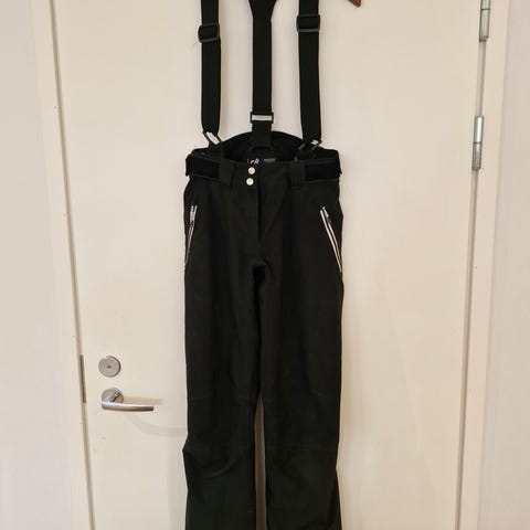 Kauniin harmaat Haltin lasketteluhousut kokoa 34, ollut käytössä 14-15-vuotiaalla tytöllä muutaman kerran. Lahkeissa lumilukot ja vetoketjut, vuötäröltä säädettävissä tarranauhoilla, henkselit.