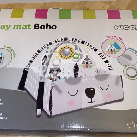 Canpol babies merkkinen leikkimatto. Maton toiminnot toimivat, 3 irrotettavaa lelua mukaan, myös kaaret saa irti. 1 irrotettava lelu hävinnyt samoin peili.
