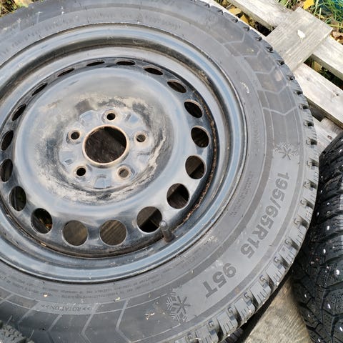 yhtenä talvena vähän ajetut, nokia nordman uudenveroiset nastarenkaat peltivanteilla.