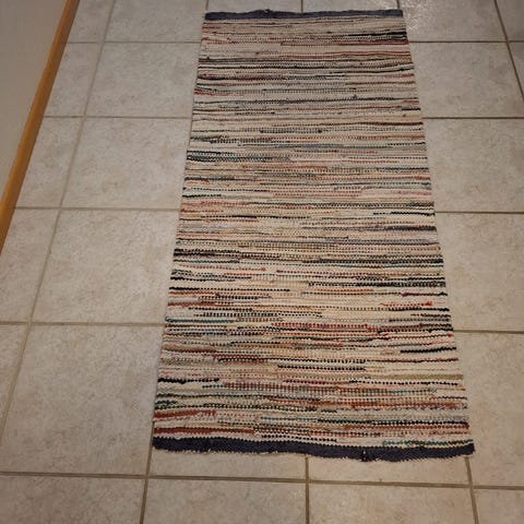 Räsymatto, vihreä ja valkoinen kuviointi.