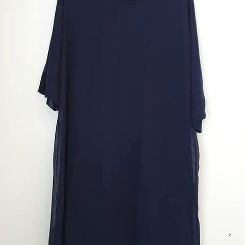 Myydään uusi lyhyt mekko, pitkät hihat ja säätö mahdollisuus vyötäröllä naruilla.