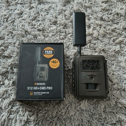 Uusi käyttämätön riistakamera ja metallinen kotelo. Kamera ja kotelo on tullut kiikarin oston yhteydessä kaupan päälle.