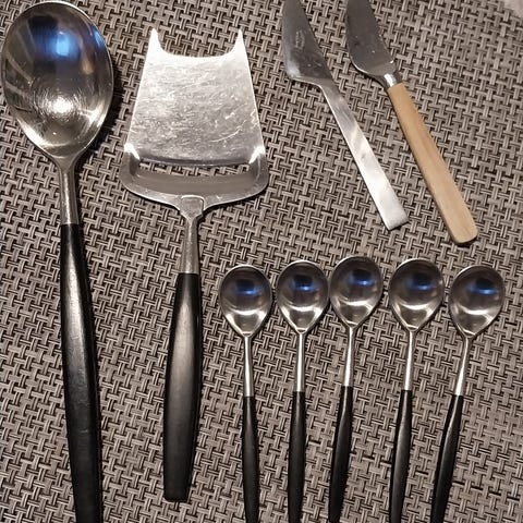 Kuusi kappaletta Bertel Gardbergin suunnittelemaa pikkulusikkaa, pituus 11, 7 cm. Hopeapitoisuus 925, signeeraus B G. Uudet alkuperäisessä pakkauksessa.