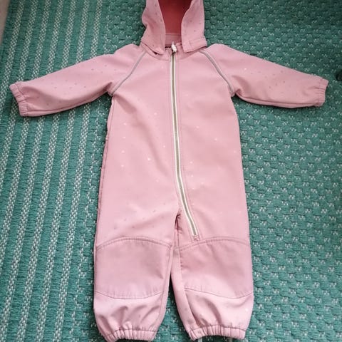 Name it kirjava haalari koossa 80 tytöille. Haalari on monivärinen ja siinä on mustat polvipaikat ja peppu. Haalari ehjä ja vetoketju toimii normaalisti.