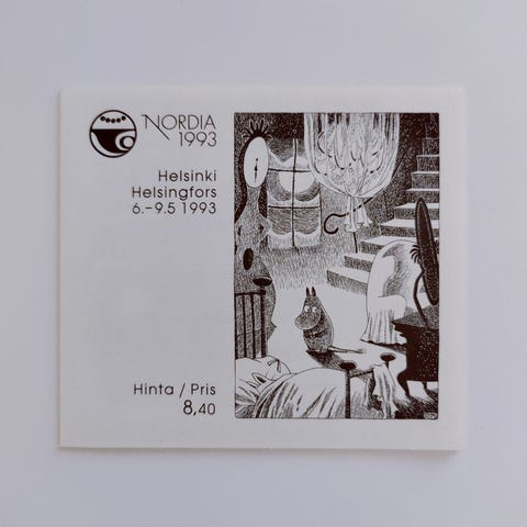 Hakusanat: postimerkki, postimerkkivihko, postimerkkiarkki, arkki, käyttämätön, leimaamaton, keräily, postimerkit, filatelia, Muumit, leijonamerkkien sarja, värisuora