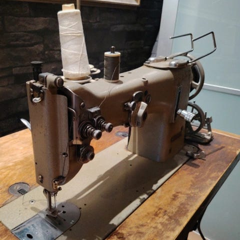 Varmaankin mm. nahkaneulontaan ja vastaavaan aikanaan suunniteltu .Koneella lienee ikää kylläkin mutta toimivana siirretty varastoon . nyt uuden harrastajan käyttöön