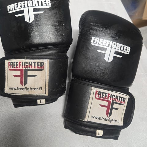 Green Hill nahkaiset paksut säärisuojat ja Lonsdale nyrkkeilyhanskat mustaa nahkaa. Suojat on varustettu tarrakiinnityksellä ja ne sopivat kamppailulajitreeneihin. Itsellä KravMagassa. Molemmat parit kokoa M.