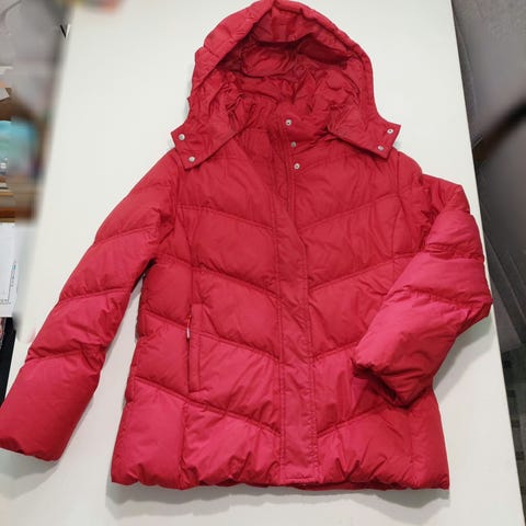 Pinkin värinen, ehjä untuvatakki. Suht pieni 36ksi. Pesty.