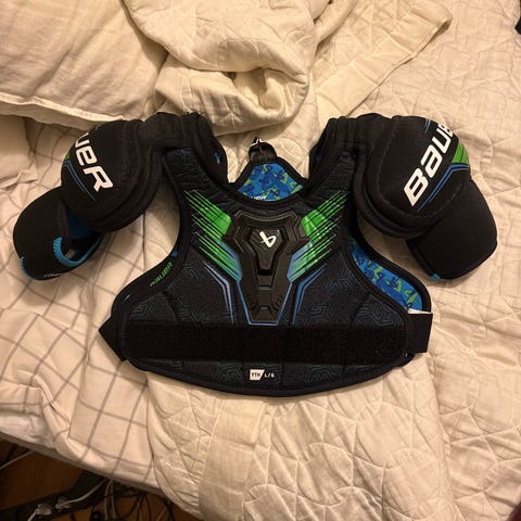 Bauer Vapor Jr. S/P jääkiekon suojavarusteet, jotka sisältävät ylävartalon ja kyynärsuojat. Rintapanssarin koko Jr. S/P, sopii pituudelle 130-140 cm ja rinnan ympärysmitalle 66-76 cm. Materiaali kestävää ja kevyttä suojaa varten. Soveltuu jääkiekon harrastajille juniorikoolla.