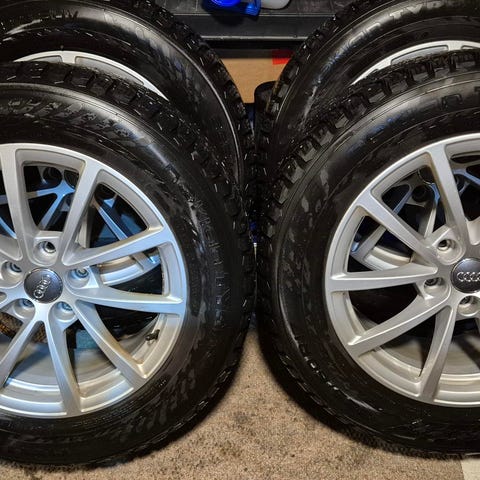Audin vanteilla Hakkapeliitta 8 nastarenkaat. Koko 225/55 R17 101T XL. Pintaa kaikissa renkaissa vähintään 6mm. Nastat pysyneet hyvinä. Ollut Audi A6 C7 Quattrossa. DOT 3120. Vanteet siistissä kunnossa.