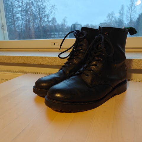 Pari vuotta sitten ostetut Solovairin Chelsea bootsit. Koko noin 41 (ehkä 40,5), mistään en löytänyt koko merkintää. Mulle pikkaisen pienet ja jääneet vähälle käytölle.
