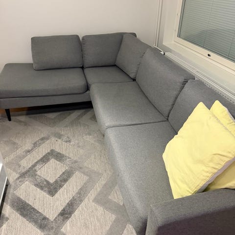 Myydään hyväkuntoinen L-mallinen kulmasohva, joka tuo tyyliä ja mukavuutta olohuoneeseen. Verhoiltu kauniilla terrakotan sävyisellä kankaalla, joka sopii monenlaisiin sisustuksiin. Selkänojassa napitettu viimeistely, ja istuinmukavuus on erinomainen.