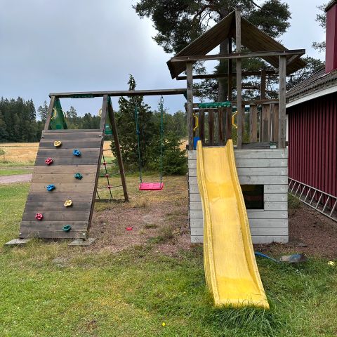 itse valmistettu lasten liukumäki keinu hiekkalaatikko yhdistelmä varattu