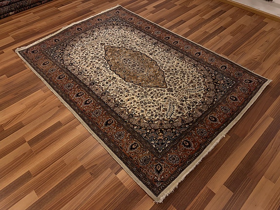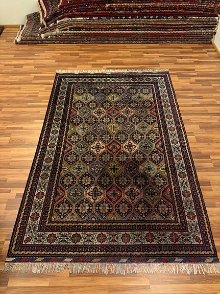 Upea käsin solmittu persialainen matto. Tämä matto on kotoisin Nahavandista, läheltä Hamadanin aluetta. Siinä on hyvin erityinen villan laatu ja kudontaominaisuudet. Se on myös hyvin vanha, noin 50 vuotta vanha tai vanhempi. Iästään huolimatta matto on kuin uusi.
