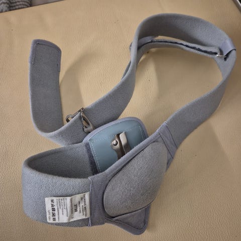 Pehmeä haaranauha kiinnitetään lantiolle tarranauhalla.