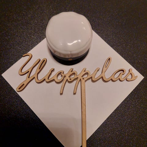 Tarjolla käyttämätön, muovinen ylioppilas lakki koristeeksi kakun päälle