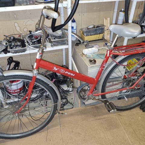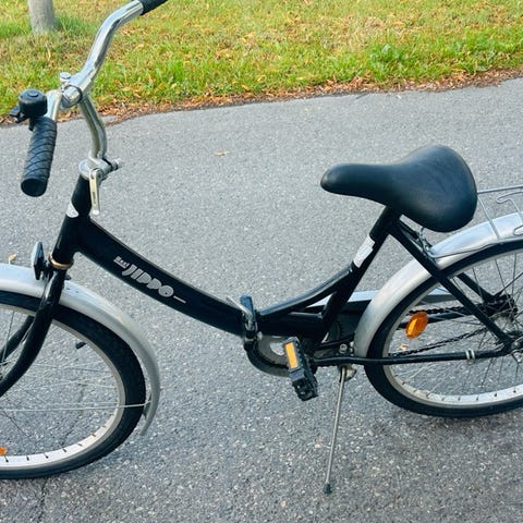 Pyörä kunnostettavaksi tai varaosiksi. 26 tuumaiset renkaat. Jalkajarru. Satula puuttuu, Yksi poljin puuttu, ketju ruosteessa, ei ole käytetty vuosiin. Kutjusuoja jää omaan käyttöön.