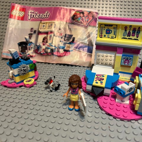 Lego Friends, Olivian luksusmakuuhuone. Muutamaa palaa lukuunottamatta kaikki tallella. Ohjekirja mukana.