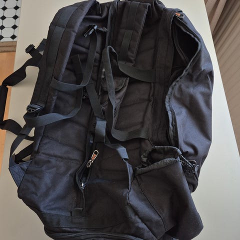Kantohihnat piilotettavissa rinkan ulkopohjan vetoketjuläpän sisään esim. lentokoneen ruumaan lastaamista varten