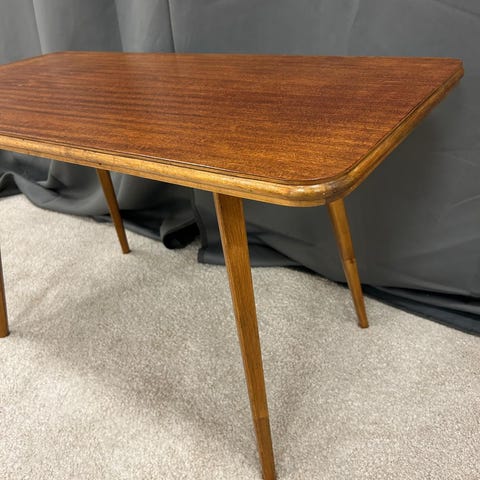 Kaunis, pyöreä ja puinen vintage sohvapöytä.