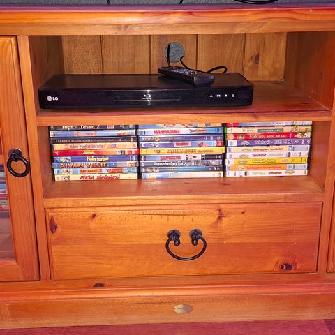 Myydään puusepän valmistama tietääkseni tammi kulma tv taso. Leveys kulmasta kulmaan 140cm yksi sivu 99cm ja korkeus 51cm.