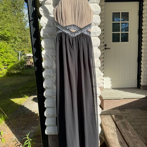 Chiara Forthi mustabeige juhlamekko timanttiyksityiskohdilla