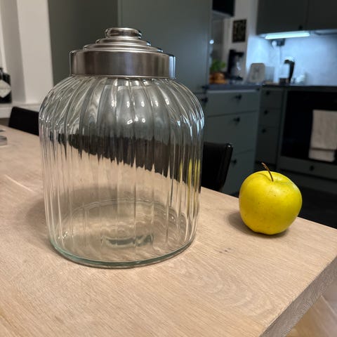 Piparin säilytykseen oiva Pentikin lasipurkki tarpeettomana.