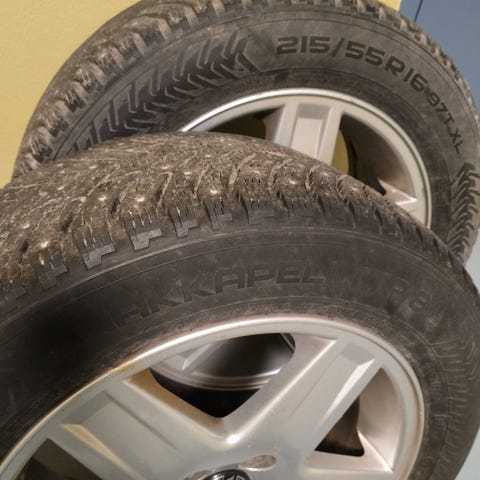 205-55-16 nastarenkaat Volvo V 50 vanteilla. Pintaa 5 mm. Voin myydä ilman vanteitakin