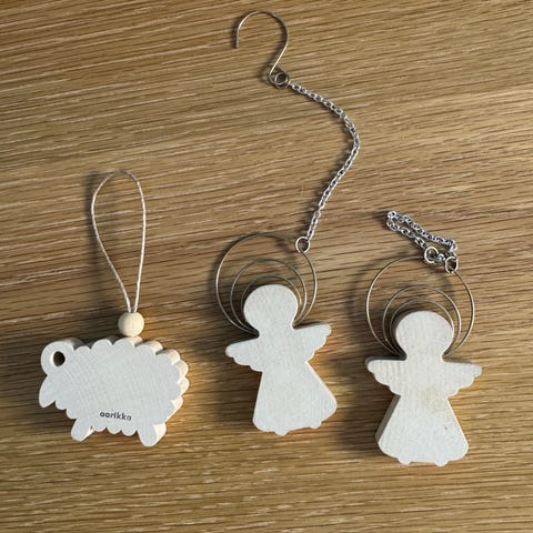 Kaksi käyttämättä jäänyttä kuusenkoristetta yhteishintaan.