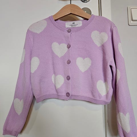 Uusi vain käyttöönpesty neule / takki kokomerkinnällä 98/104. Hupussa söpö pörröinen reunus. 50% puuvillaa ja 50% akryyliä. Ihanan pehmeä!