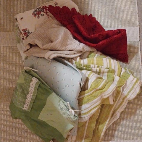 Annetaan kuvanmukaiset tyynynpäälliset ja 1 sisätyyny. Pesu hakijalle.