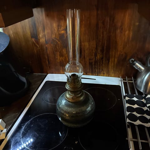 Vas.puol.Lamppu, joka toimii Kynttilä lampulla, kork.15 5cm 3 euroa.