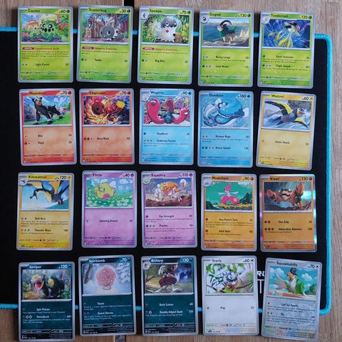 Myydään Scarlet & Violet base set Pokemon kortteja 17kpl. Hinta yhteensä 7,90e tai yksittäin ostettuna hinnat alla. HUOM! Quaquaval, Kirlia ja Shuppet myyty!