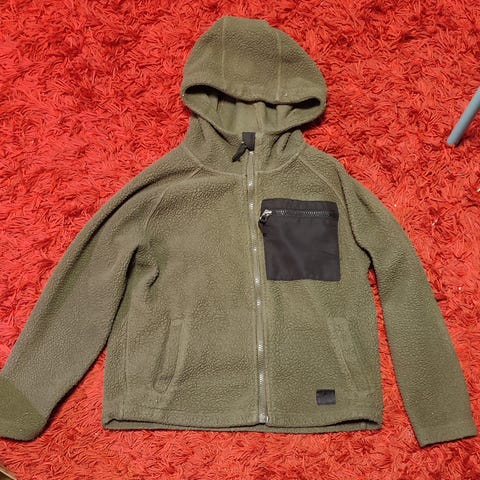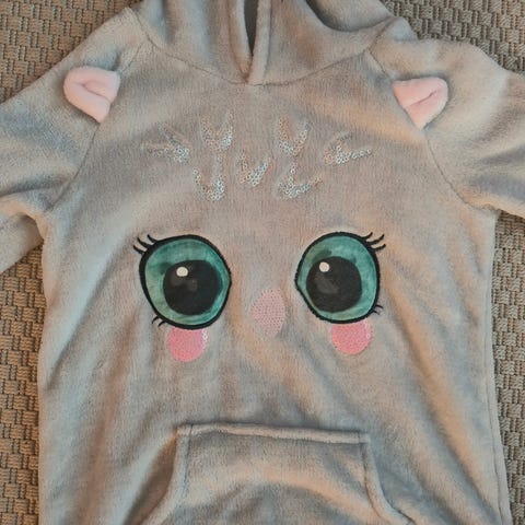 Uudenveroinen muhkea pörrötakki/huppari. Kokomerkintä 140, vastaa enemmän kokoa 134/140. Ei lemmikkejä tai tuoksuja taloudessa.