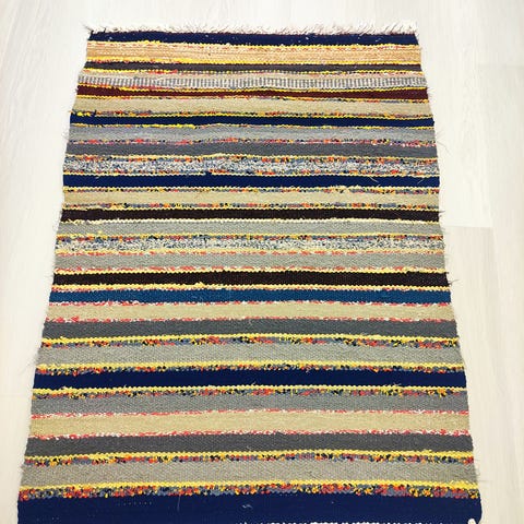 Myydään pirteä räsymatto. Koko n. 73 x 122 cm.