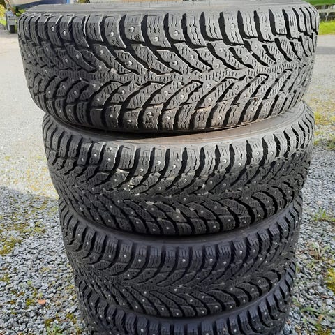 Skodan nastarenkaat alumiinivanteilla. Muistaakseni vain yhden talven ajetut. Joka tapauksessa hyvä kuntoiset. Ovat edellisen autoni renkaat, ja myynnissä kun eivät sopineetkaan kooltaan uuteen autooni.