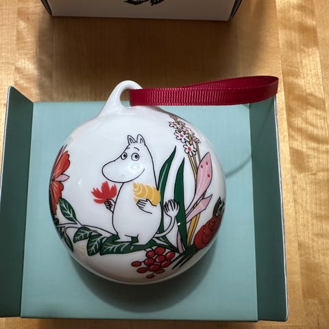 Käyttämätön, alkuperäisessä pakkauksessa oleva priima kuntoinen sinivalkoinen joulupallo.