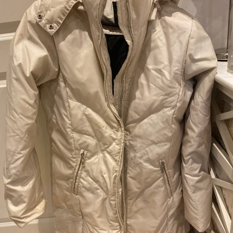 Hyväkuntoinen takki k. 36 (vastaa 36-38). Sanoisin, että menee +10-0 asteeseen