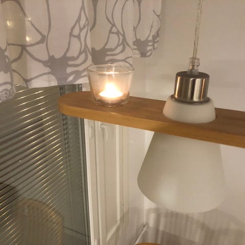 Riippuvalaisin kattokruunu pitkällä johdolla.