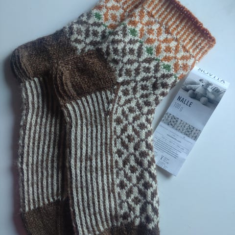 Eläkkeellä oleva äitini tykkää kutoa ajankulukseen ja hänen puolestaan myyn: Uudet, käsinkudotut Novitan 7-veljestä langasta. Vahvistettu kantapää. Jalkaterän pituus 27.5 cm eli koko 41-42. Varren pituus nilkasta 31 cm. Eläimetön ja savuton koti. Postikulut ostajalle tai nouto Nokialta.