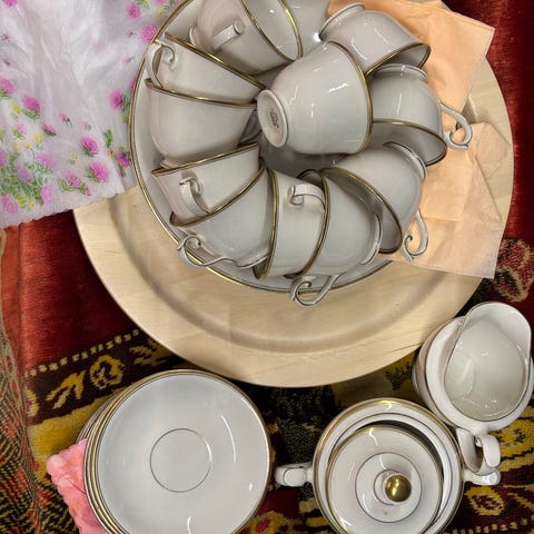Kuusi kahvikuppia aluslautasineen , hyvässä kunnossa . Uuden veroisia .