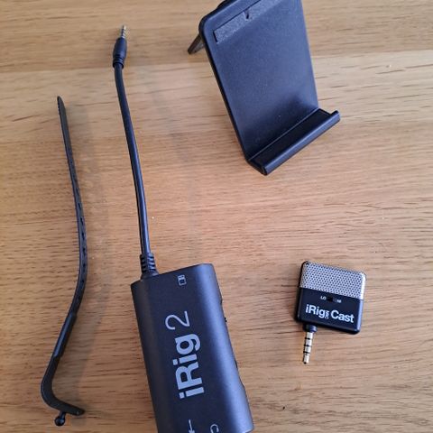 Vähällä käytöllä ollut iRig. Mukaan lightning kaapeli iPhonelle tai iPadille. Toimii hyvin esim Garagebandin kanssa.