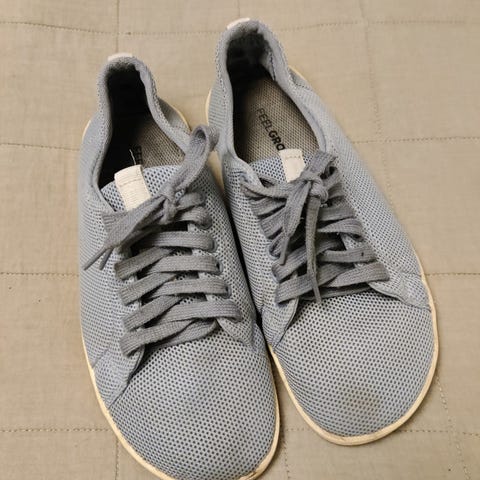 Vähän käytetyt mutta pitkään jemmatut paljasjalkatossut. Feelmax koko 38. Pinnassa näkyy kuvanmukaiset rokamat ja läpässä myös. Toimivat kengät vielä, mutta ei täydellisen siistit.