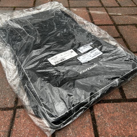 Siistikuntoinen alkuperäinen maski jossa mustat puolat eli AMG night versio.