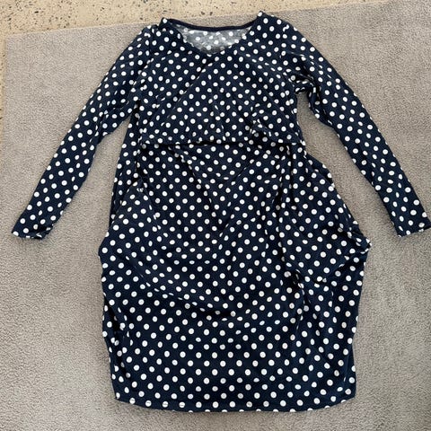 Ollut raskausmekko joka on kavennettu ja hieman lyhennetty
