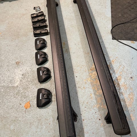 Thule WingBar Edge 9592 (Medium) + 9593 (Large) telineputket. Jalkasarja ja kaikki kiinnitysosat. 2 kpl avain.