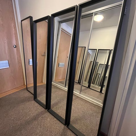 Lönsås-peileistä ja kehyksistä 21*30cm kasattava modulaarinen DIY-peili. Yksi peili mennyt rikki, joten peilejä 19kpl ja kehyksiä 20kpl. Vain nouto Mäntsälästä. Hinta yhteensä, en myy erikseen. Ovh 80€.