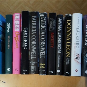 Kirjat ovat siistejä ja hyväkuntoisia, osa uusia/lukemattomia, parissa kirjassa on kulumaa.