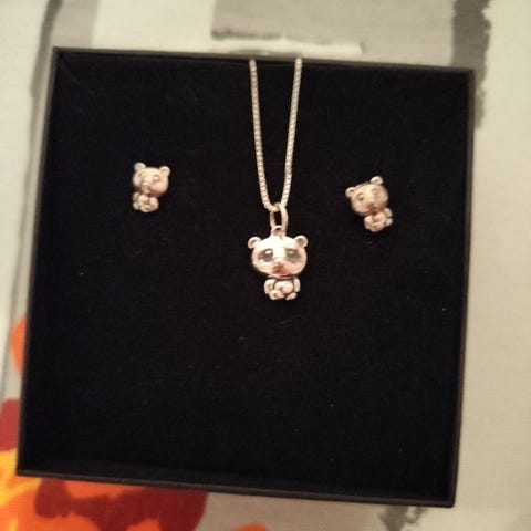 Kuvan mukaiset hopeakorvikset. Nallen korkeus 1,5 cm. Koukkuineen yli 3 cm.
